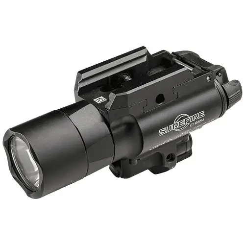 The X400UH-A-RD was created to interface with SureFire's revolutionary Masterfire Rapid Deploy Holster. The compact but powerful weaponlight/laser features a unique bezel with cam slots, and pin slots on both sides of the body, that lock the light into the holster, securing the weapon at an advantageous angle for quick deployment. It is designed to automatically activate when the weapon is drawn from the Masterfire holster, saving valuable time in high-stress situations and making one-handed manipulations easier. It utilizes a recoil-proof LED covered with a proprietary TIR lens that focuses 600 lumens of light into a smooth, farther-reaching beam with a large central spot. Its five-milliwatt red laser sight is highly visible to the human eye and, once zeroed, rarely needs re-zeroing due to the Nylok adjustment screws that won't back out from the effects of recoil. A lightweight but strong aerospace-aluminum body finished with Mil-Spec hard anodizing provide superior toughness, while O-ring and gasket sealing provide weatherproofing. The X400UH-A-RD is achieved via ambidextrous switching located at the rear of body, providing one-finger control. It can be easily and securely attached to any pistol or long gun equipped with a universal or Picatinny rail.