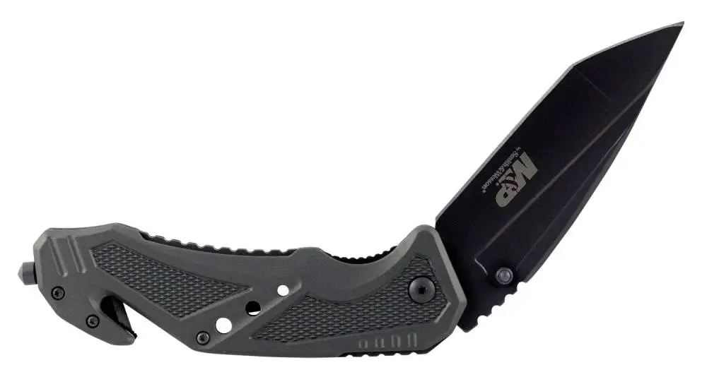 The M&P Folder with Seatbelt Cutter features a 3.8" 7CR17MoV stainless steel blade with a black finish.