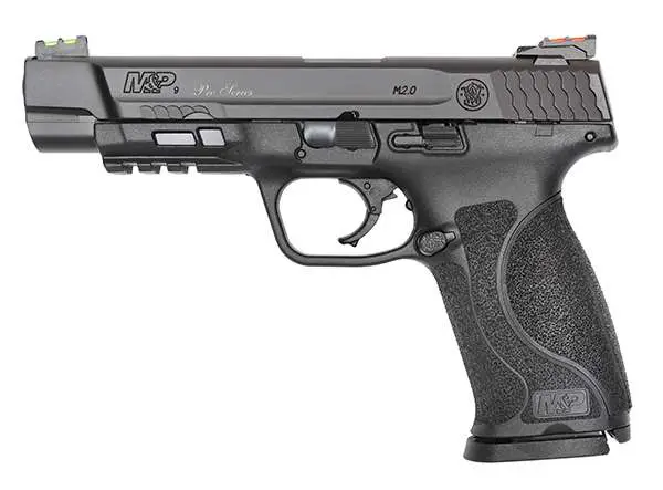 The S&W Performance Center M&P 9 M2.0 Pro Series' low barrel axis makes the M&P pistol more comfortable to shoot and allows for faster aim recovery. The pistol features a PC tuned action with audible trigger reset, front cocking serrations, Armornite durable corrosion resistant finish and an extended rigid embedded stainless steel chassis system to reduce flex and torque while firing. Includes a semi-rigid carry case, two magazines and a Performance Center cleaning kit that includes collapsible cleaning rod with rotating T-handle, 10 cotton cleaning patches, nylon cleaning brush, bronze bore brushes and nylon jags (22 cal, 9mm/357/38 cal, 40/10mm cal, 45 cal) and nylon slotted tips.