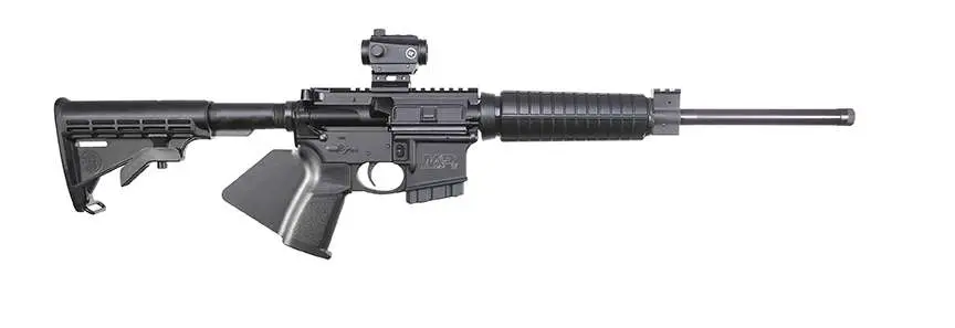S&W M&P15 Rifle is the ideal modern sporting rifle. It is versatile, reliable, and built to perform multiple uses under various conditions. It is also lightweight and rugged which embodies the best combination of function and form. The Sport II optic-ready rifle features a Crimson Trace red-green dot optic sight which provides an out-of-the box sight solution on your optics ready rifle. With both red or green dot reticles, the you can pick the color and the intensity of the dot that works best for them. It also utilizes a gas block with an integral Picatinny-style rail, Armornite finish on the barrel both on the interior and exterior, and a forward assist and dust cover.