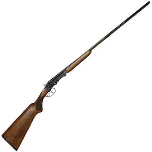 This shotgun features a turkish walnut stock, a vent rib steel barrel, fiber optic bead sight, and an external hammer safety.