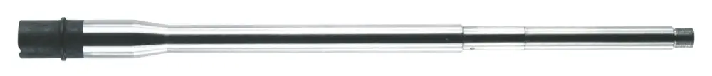 This 308 replacement barrel features a rifle length gas system with M4 feed ramps, 5/8"x24 tpi threads and is constructed of steel. It has a stainless steel finish. This model is 20" long.