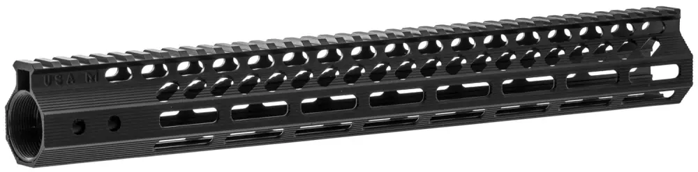 This T-6 Aluminum hand guard features 7 rows of MLOK accessory attachment points on three sides, and a full length Picatinny 1913 rail on the top. A steel USA made barrel nut and fasteners round out the durable construction of the hand guard. A Type 3 hard anodized finish completes the package.