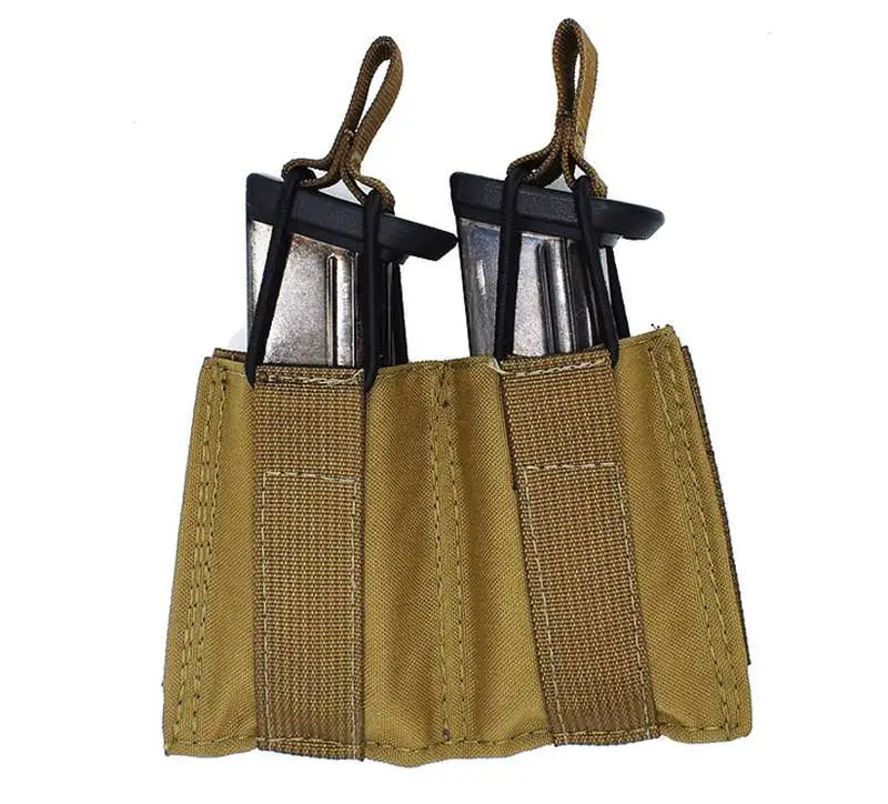 Double SPEED LOAD pistol Magazine Pouch is designed with durability and fast reloading of your rifle in mind. Constructed with tough 1000 Denier Nylon exterior and blackened grommets that serve as convenient drain holes. Magazines are retained with top quality elastic cords and convenient pull tabs. Just flip them over when needing quick access when things get fast and furious.