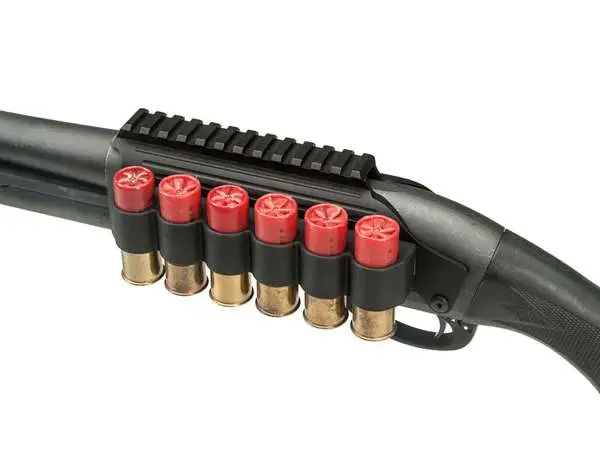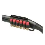 This ultra-rigid lightweight aluminum unit straddles both sides of the receiver and is crafted with a non-glare anodized finish. The top Picatinny rail can mount a variety of accessories, yet is designed to sit just high enough to allow continued use of the shotgun's bead sight. This rail mount incorporates a Slimline SideSaddle shotshell carrier made of flexible synthetic rubber to keep six (6) extra shells in readiness.