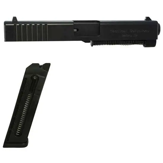 The TSG-22 quickly and easily converts to any generation, even generation 4 of the Glock models 19/23/32/38 into an accurate .22LR pistol. Machined from a solid piece of heat treated 4140 steel, the TSG-22 maintains a similar weight and feel to your factory Glock allowing realistic shooting and training. A nitride surface treatment offers superb resistance to wear and surface friction. The barrel has a 1:16" twist. It comes with factory Glock sights and includes a 10-round magazine.