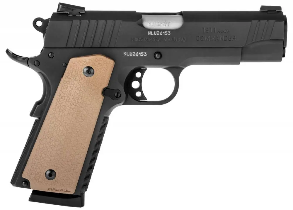 With its 8+1 capacity and 4.2" barrel, the Taurus 1911T 45 ACP Commander has a shorter profile than traditional full-size 1911s but maintains a full-size grip providing a positive grip purchase. Perfect for carry, self defense or home use, the Commander features Novak drift adjustable front and rear sights, checkered grips and extended beavertail that offers comfortable shooting with great control. The Commander is easily customized as it is built with industry standard components.