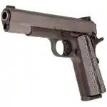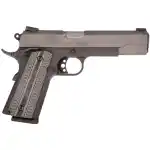 Designed to be the standard that all 1911 pistols are compared against, the Taurus 1911 line offers the most accurate and feature-laden models on the market today. Starting with hammer-forged (not cast) ordnance-grade steel frames, slides, and barrels, Taurus machines each part to tolerance levels that surpass even today's industry standards. Skilled Taurus pistolsmiths hand-fit and tune each gun with 19 standard features, using quality parts built 100% in the state-of-the-art Taurus factory. In the final step of the process, the slide, barrel, and frame are marked with matching serial numbers. The Taurus 1911 is an unbeatable gun that is also an unbeatable value. This model features a matte black frame with a Mil-Spec cerakote gray slide and Picatinny rail. It also has custom VZ grips.