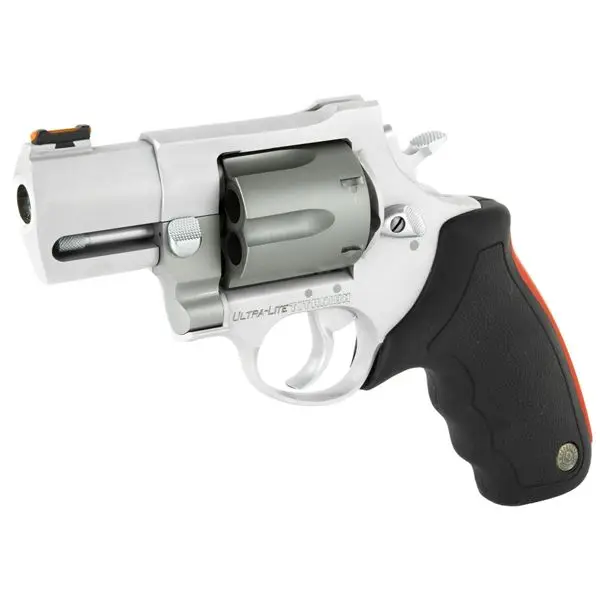 The Taurus Model 444 UltraLite .44 Magnum revolver is built on a Raging Bull style frame and easily handles the .44 Magnum. This super light, six-shot multi-alloy revolver will accompany you on more hunts than any other hunting companion. The Model 444 UltraLite has a dual lockup cylinder for stability under extreme chamber pressures, a transfer bar safety, and the Taurus Security System for the built-in ability to secure your pistol at the turn of a key. At just 28 ounces, you won't even notice it's there until you need it. The 444 UltraLite has a matte titanium and stainless steel metal finish, fiber optic front sight, and a black cushioned insert grip to pillow recoil.