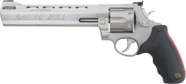 The Raging Bull is still among America's favorite hunting handguns. The mighty 444 revolver is built for a lifetime of tough use and offers an award-winning design, a crisp trigger break and smooth pull for accuracy, cushioned grips and factory porting to reduce felt recoil.