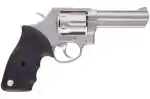Taurus Model 65 revolvers are a longtime favorite of security personnel and perfect for Homeland Defense Forces. This medium-frame, 6-shot revolver features comfortable rubber grips and a deep, lustrous finish. This single action/double action 357 Magnum has a 4" barrel and fixed sights. It has a transfer bar safety and the Taurus Security System This model has a matte stainless steel metal finish.