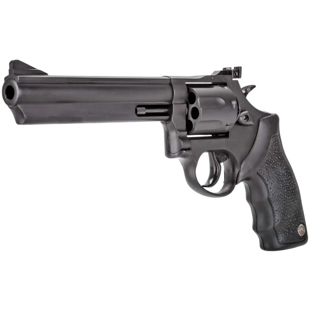 Taurus Model 66 revolvers are a longtime favorite of security personnel and perfect for Homeland Defense Forces. This medium-frame, 7-shot revolver features comfortable rubber grips and a deep, lustrous finish. This single action/double action 357 Magnum has a 6" barrel and adjustable sights. It has a transfer bar safety and the Taurus Security System This model has a matte black metal finish.