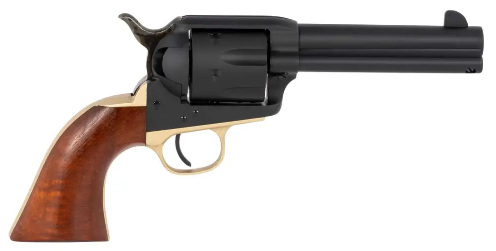 The Old Randall was designed with the famous Kentucky & West Virginia family feud in mind. This model features a matte blued forged steel frame, matte blued finish parts, case hardened hammer, matte brass backstrap & triggerguard, and walnut Navy size grip.