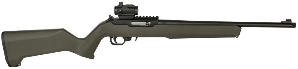 This bundle package includes a T/CR 22 rifle, Thompson/Center Rifle carry case, TC-101 Red/Green Dot optical sight, and T/C Neo Rifle Sling. The T/CR 22 rifle included in this package features a fully machined 6061 aluminum receiver, crisp trigger, built in picatinny rail, molded in swivel studs, and threaded muzzle. It also features M-lok slots under the forend, and adjustable peep sight and front sight with fiber optic insert. The TC-1-1 Red/Green Dot optical sight features 5 MOA round green or red dot aiming point. The T/C HP Neo rifle sling is made from neoprene and quick-detach swivels are included.