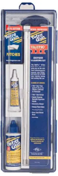 ValuPro III cleaning kit offers the highest quality and versatility available on the market today, all in an attractive, significantly more compact case package. Now including Tetra Gun Grease, ValuPro III kits contain everything shooters need to maintain, clean and lubricate their firearms. ValuPro III cleaning kits are available for most calibers and gauges. This kit also includes Triple Action, bronze brush, cotton patches, patch holder, collapible cleaning rod and silhouette pistol extension.