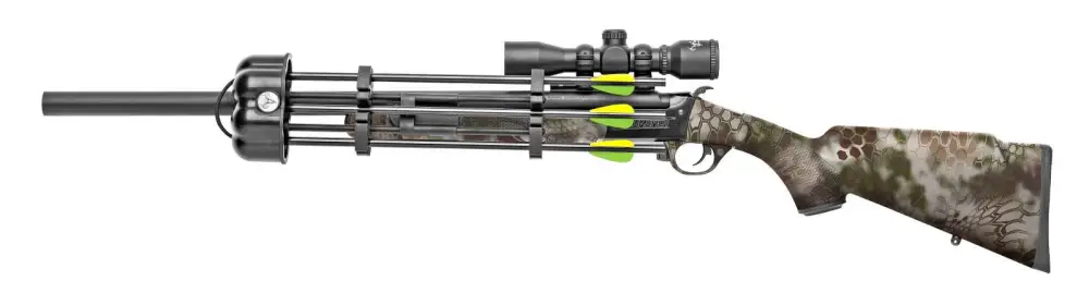 The patented Crackshot XBR package comes with the Crackshot single shot rifle in .22 cal with a 16.5 barrel. This gun is lightweight, easy to carry, and perfect for small game hunting. Additionally, you get the XBR upper that you can swap onto your Crackshot rifle. With a 20 barrel, the XBR allows you to shoot an arrow out of your Crackshot rifle and changes your platform into a whole other gun. The XBR has an inner barrel that allows you to slide the hollow end of a Traditions Firebolt Arrow over this inner barrel until it reaches the end of the barrel. The inner barrel is protected by an outer shroud which also protects the shooter. Keeping the gun pointed down range, simply load your arrow, break open the action, and put in a Traditions XBR Powerload. *Note- this package does not come with a QD Quiver or Traditions XBR Powerloads.