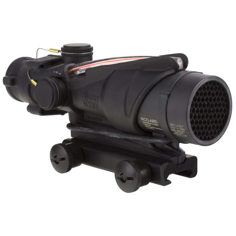 The ACOG is internally-adjustable, compact telescopic sights with Tritium-illuminated reticle patterns for use in low light or at night. It combines traditional, precise distance marksmanship with close-in aiming speed. This model is designed for use with the M16 family, every feature of its mechanical and optical design was chosen for a single purpose: to provide increased hit potential in all lighting conditions, without failure prone batteries.