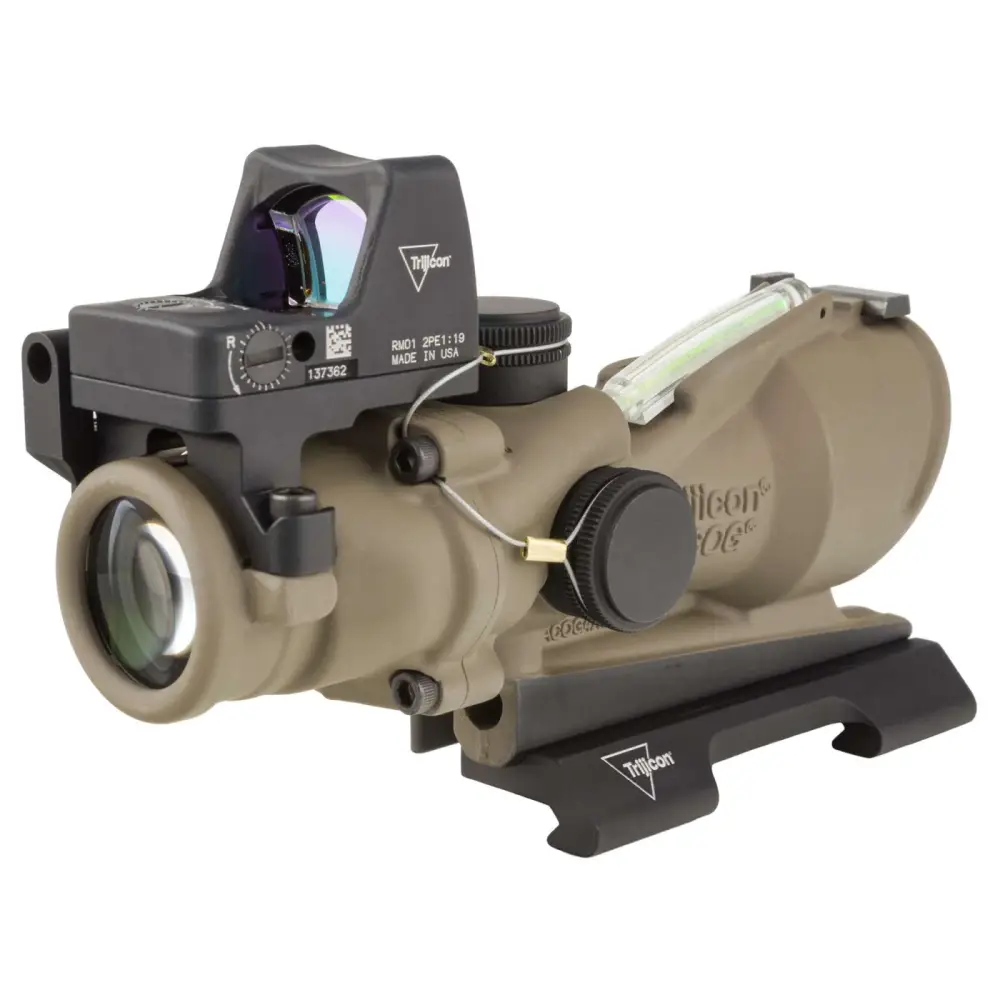 Trijicon's ACOG (Advanced Combat Optical Gunsight) is a fixed power, compact riflescope with an illuminated reticle pattern for use in bright to low/no light with legendary durability and reliability. Every feature of its design was chosen for a single purpose, to provide increased hit potential in all lighting conditions. Fewer moving parts than a variable optic equals more durability, and the forged 7075-T6 aircraft-aluminum-alloy housing provides for a nearly indestructible sighting system. Multi-coated lenses provide superior clarity and light-gathering capabilities with zero distortion. The ACOG is dry-nitrogen-filled to eliminate fogging and waterproof to 100 meters. It is shock-resistant, proven to withstand recoil from 22LR up to 50 BMG, and easily passes U.S. military drop test requirements.