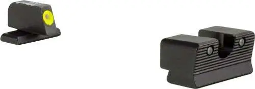With the challenges of law enforcement and military in mind, Trijicon HD Night Sights is a self-luminous three dot sight set which uses a tritium-phosphor lamp protected within an aluminum sleeve and capped with a sapphire jewel to evenly distribute light and protect from solvents and puncture. They have a metal body with a silicone rubber cushion for shock protection. The u-notched rear sight is angled and serrated to reduce glare, while the front sight has a tall blade. The protective clear coat resists powder residue and cleaning solvents to keep the color bright for years.