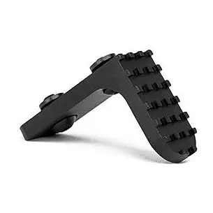 Trinity Force's Billet Keymod Hand Stop is machined from aircraft grade aluminum and steel with a black hard coat anodized finish. It features KeyMod mounting points for a flush fit on any KeyMod rail. It also utilizes a rounded inner profile for comfort and a positive grip on the rail system.