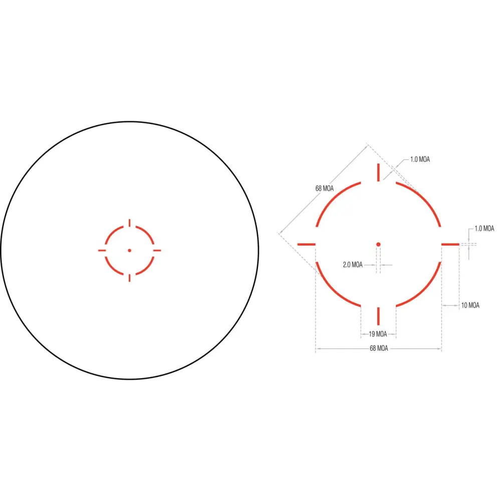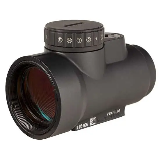 The Trijicon Miniature Rifle Optic (MRO) is a reflex-style, sealed sight intended for use on rifles, carbines, and shotguns to provide fast target acquisition. It is designed to be used with both eyes open, providing the operator with maximum situational awareness. The large aperture and tapered light path maximizes the viewing area in such a small optic, allowing for fast target engagement especially from non-standard shooting positions. It also features ambidextrous brightness controls, sub-flush adjusters, advanced lens coatings, and a fully sealed, waterproof, hard anodized forged 7075-T6 housing, making the MRO the ultimate mini reflex sight.