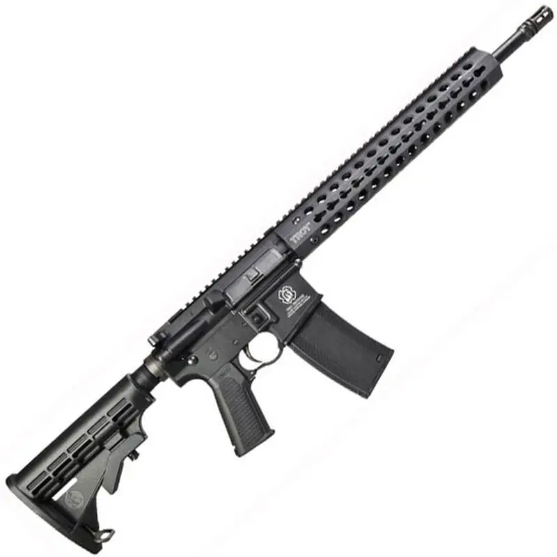 Troy's CQB-Optic Ready Rifle ships without sights to allow you to add your own optics. This rifle is dressed with Troy's BattleAx Control grip and M4 Style 6 position stock with Troy markings and features a forged lower receiver, M4A4 type flat top forged upper receiver, M4 feed ramps, enhanced trigger guard.