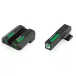 Tritium Pro Night Sights retain the brightness and durability of Truglo's original green Tritium night sights with added Pro features: a quick and accurate U-notch design, an angled rear sight edge for emergency one-hand operation, and white Focus Lock ring on the front sight for even faster focus.