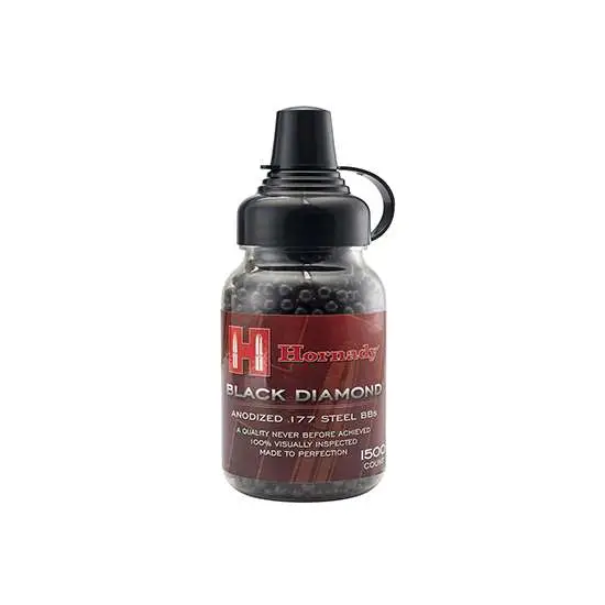 These premium .177 steel BBs manufactured by Hornady have a black anodized finish, and are 100 percent inspected. The finish provides reduced surface variation for maximizing speed, accuracy, and distance traveled.