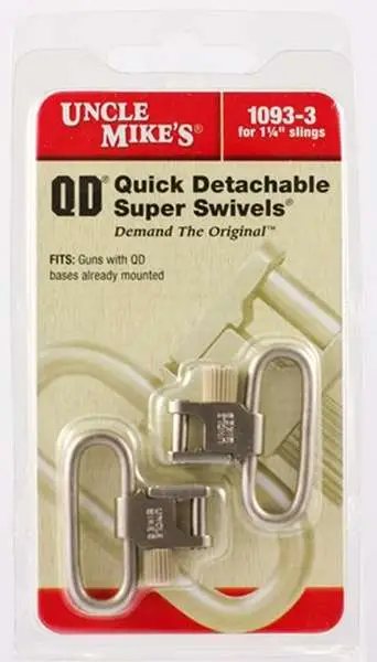 Uncle Mike's QD Super Swivel with Tri-Lock offers silent operation. Detaches quickly, yet provides positive locking for safety. Three-lock system for optimum security against accidental opening. Super swivels do not include studs.