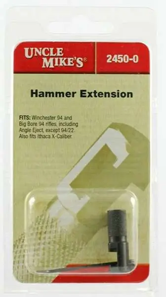 Slip over hard-to-reach or hard-to-cock hammers for extra leverage. A must for scoped guns with external hammers. Blued steel, knurled surface for easy gripping. Fits most hammer-type guns, either right or left side. (Allen wrench included.) No low wall or high wall designs. Fits Winchester 94 and Big Bore 94 including Angle-Eject (except 94/22); lthaca X-Caliber; Henry Lever Action .22 & Pump Action .22.