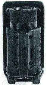 This holder was designed to accept Streamlight, Insight Technology M-3, M-5, M-6 lights. It carries the light in either a lens up (tactical) or lens down (protective) position. The unique clip-on design fits securely on both dress and duty belts up to 2 1/4".