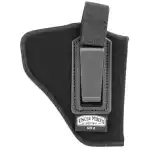 Uncle Mikes Inside the Pants Open Style Holster has ultra thin four layer laminate no thicker than conventional suede leather holsters. The internal moisture barrier will not transmit perspiration to gun.