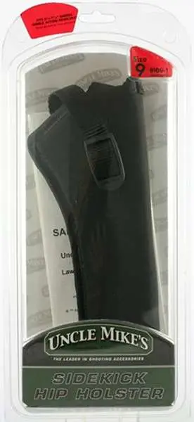 The patented Sidekick is made with the laminate of cordura nylon, waterproof closed cell foam padding, and smooth nylon lining. The memory quality of laminate molds to the gun for an excellent fit, yet returns to it's normal shape when the gun is removed. It also has the patented nylon web sight channel, medium high ride design, and a double-slotted molded belt loop that allows for it to be worn on holster belts up to 2 1/4" wide or a standard trouser belt.