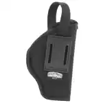 The patented Sidekick is made with the laminate of cordura nylon, waterproof closed cell foam padding, and smooth nylon lining. The memory quality of laminate molds to the gun for an excellent fit, yet returns to it's normal shape when the gun is removed. It also has the patented nylon web sight channel, medium high ride design, and the double-slotted molded belt loop lets you wear it on holster belt up to 2 1/4" wide or a standard trouser belt.