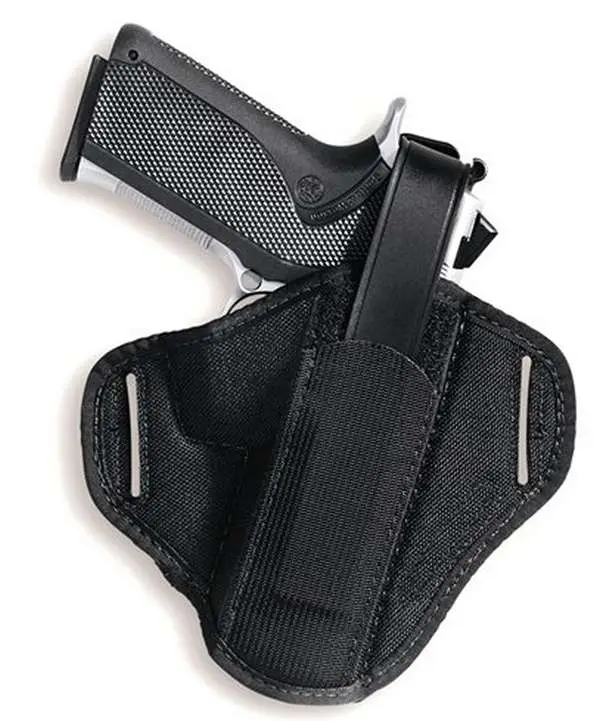 Uncle Mikes Super Belt Slide Holster features a flattened profile for optimum concealment. The Kodra nylon body is highly abrasion and water resistant, while the medium high ride design positions your firearm for a smooth draw. Its thumb break and retention strap are protected by Strap Taps.