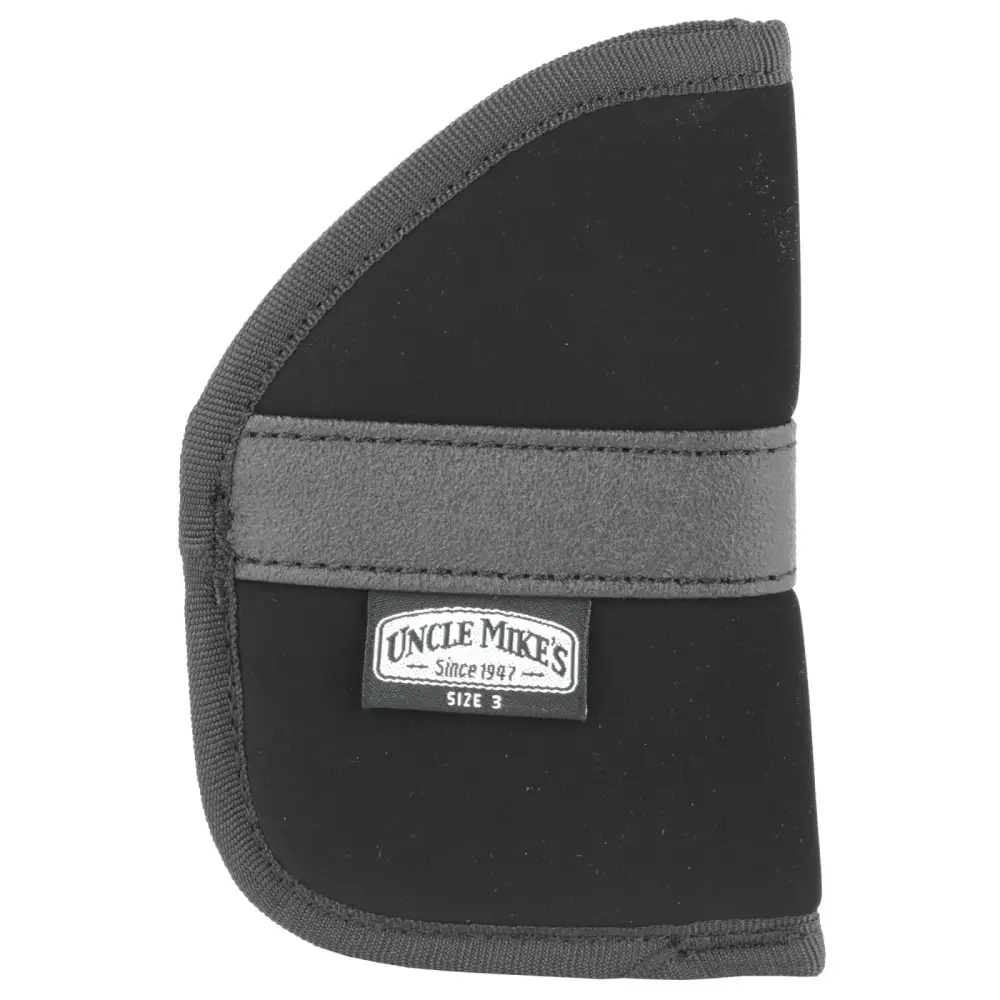 Uncle Mikes Inside the Pocket Holster's open top provides grip up positioning and prevents the movement of levers, buttons or catches that are common to loose pocket carry. The non slip band retains holster in pocket when gun is drawn.