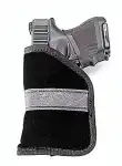 Uncle Mikes Inside the Pocket Holster's open top provides grip up positioning and prevents the movement of levers, buttons or catches that are common to loose pocket carry. The non slip band retains holster in pocket when gun is drawn.