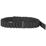 These belts are excellent for quick access to extra rounds contained in their elastic cartridge loops. They are made of a tough 2" black nylon web with flip open buckle, and are able to fit waists up to 50".