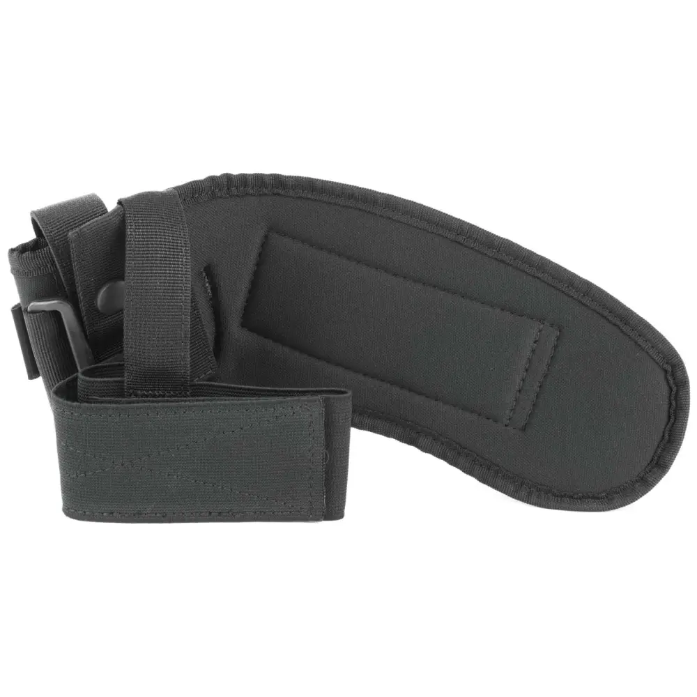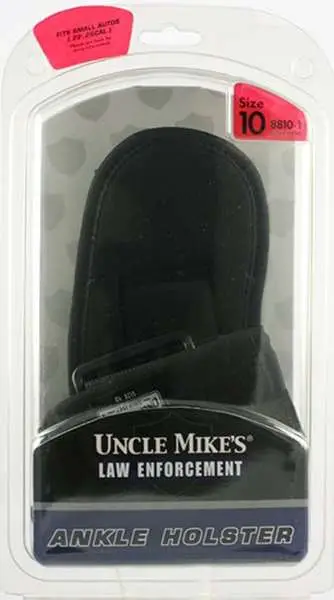 Uncle Mikes Ankle Holster hides small and medium guns, even compact large frame autos inside pants leg. The holster is constructed of a Kodra nylon with soft knit fabric for durable comfort. The nylon web retention strap with reinforced thumb break. The right hand model works for inside the left leg.
