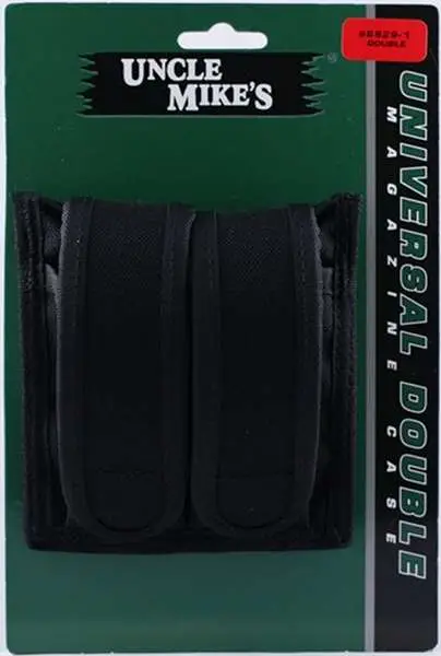 Uncle Mikes' Double Mag Pouch is made with Cordura nylon with closed-cell foam padding, molded belt loop, and a hook-and-loop close. It holds up to two (2) magazines and allows for vertical or horizontal carry. The Double Mag Pouch fits up to 2.25" belts.