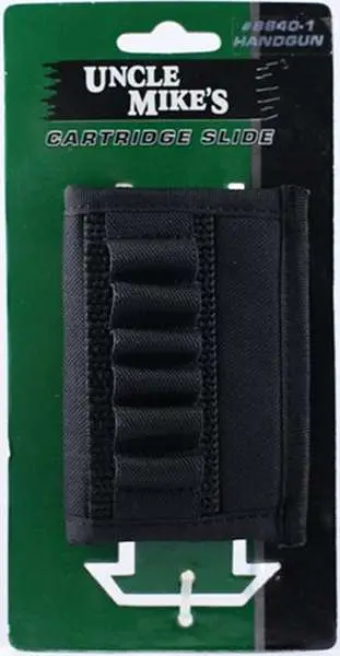 Uncle Mikes' Cartridge Holder is made of a tough nylon web with sewn-on elastic loops and slides onto your belt. It fits belts up to 2.25".