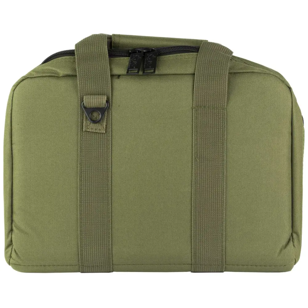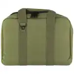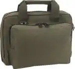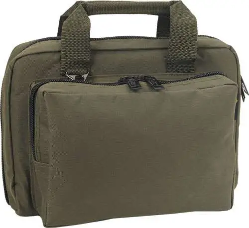 The US PeaceKeeper Mini Range Bag is a versatile piece of essential equipment to transport your handguns and other necessities to the range. Ideal for carrying two handguns, compact earmuffs, eye protection and added ammunition. It has a 10" x 7" x 2" front pocket; two interior tricot-lined padded side pockets with hook and look tab to secure guns, eight magazine pockets. Made of rugged, water-resistant 600D polyester, it has heavy duty, self-reparing double zippers, and wrap around handles.