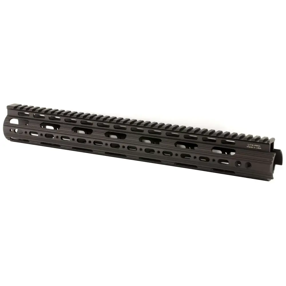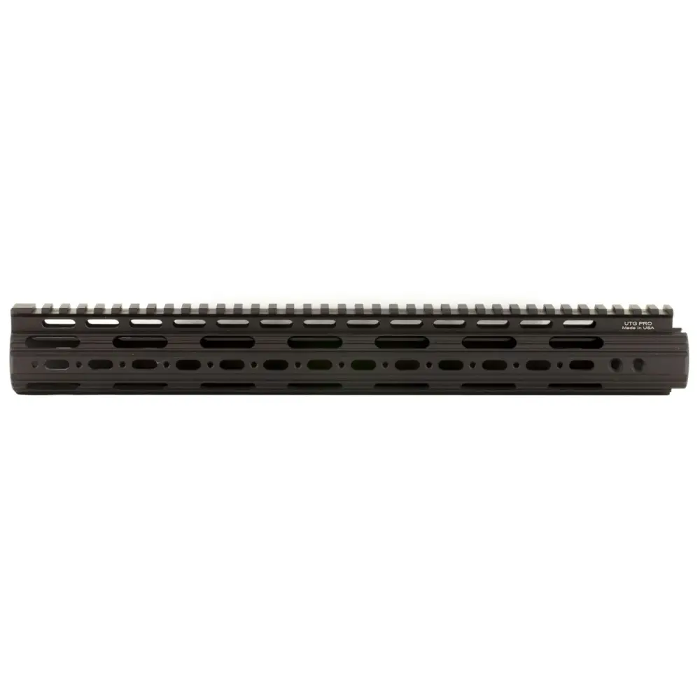 The UTG Pro M 4/15 Rifle 15" Super Slim Free Float Handguard is free-floating with proprietary attachment design and a compact profile. Lightweight with rail at 12 o'clock position forms a continuous picatinny top section. Includes 3 user detachable 2-slot rail sections for 3, 6 and 9 o'clock positions. Integral anti-rotation tab for locking, accommodates low profile gas block and ergonomic slim tubular profile for positive handling. Made in USA NOTE: This rail system is designed to fit with standard AR15 gas tubes. The compatibility with any special piston system is not guaranteed. Also, the rail system works with standard AR15 upper receivers. It may not be compatible with any re-designed, over sized upper receiver.