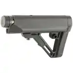 UTG PRO AR15 Ops Ready S1 Mil-spec Stock Kit is built for heavy-duty operations with the tightest tolerance controls to provide the most secure fit and function. The Mil-spec stock is molded from impact resistant high-strength polymer in black, the mil-spec diameter extension tube is precision machined from aircraft grade aluminum with rolled threads and anodized for best corrosion and wear resistance, ergonomically chamfered built-in rubberized butt pad and a slanted cheek rest enhances shooting stability and promotes consistent firearm control. Dual storage compartment with removable waterproof caps provide dry storage for batteries (Up to 8 CR123) or other accessories. Integral ambidextrous sling loop and QD, extended 8" length for length of pull. Includes polymer stock, mil-spec 6 position extension tube, buffer, buffer spring, tear-drop ring and castle nut. Snag free performance with fully dehorned corners and melted contours for increased comfort. Proudly made in USA.