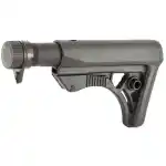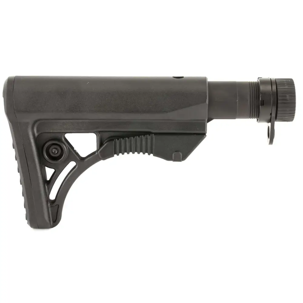 UTG PRO AR15 Ops Ready S3 Mil-spec Stock Kit built for heavy-duty operations with the tightest tolerance controls to provide the most secure fit and function. The Mil-spec stock is molded from impact resistant high-strength polymer in black, the mil-spec diameter extension tube is precision machined from aircraft grade aluminum with rolled threads and anodized for best corrosion and wear resistance. Rubberized butt pad and a slanted cheek rest enhances shooting stability and promotes consistent firearm control. Integral ambidextrous sling loop and QD. Unique 6.05" length and sub compact profile for superior lightweight performance with 6 position adjustability- Combine with our Super Slim Handguards for a Superior Firearm Handling Experience. Snag free performance with fully dehorned corners and melted contours for increased comfort. Includes polymer stock, mil-spec 6 position extension tube, buffer, buffer spring, tear-drop ring and castle nut. Proudly made in USA.