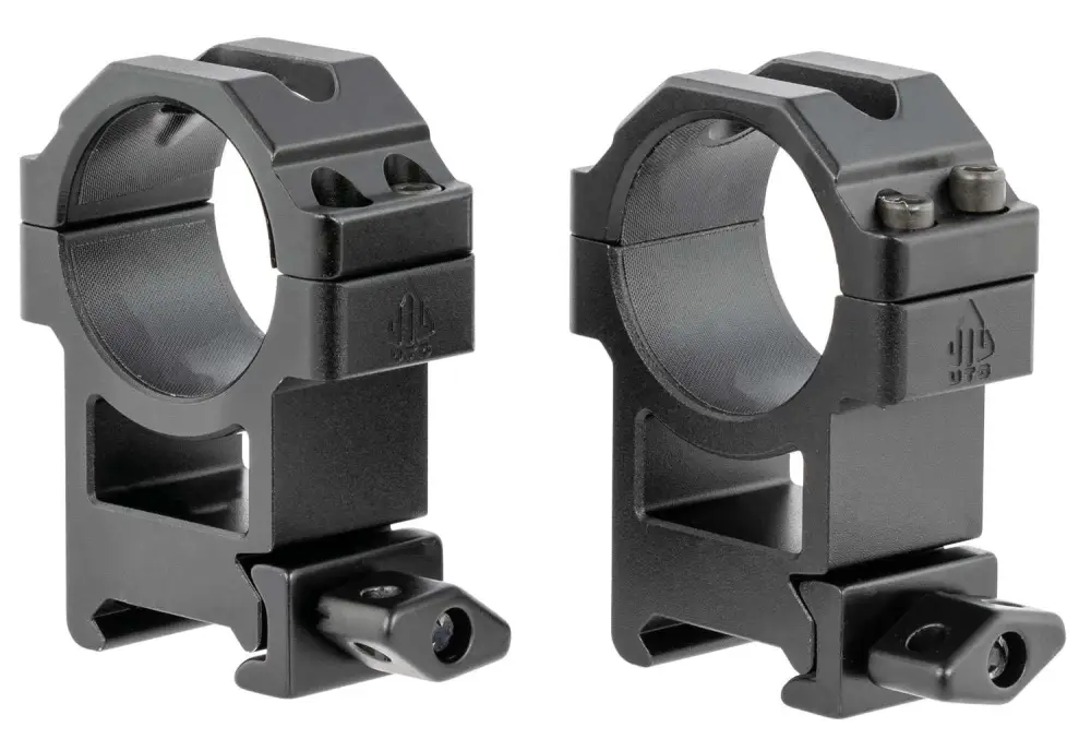 Leapers Max Strength High Profile "Tiger" Ring. Made from aircraft aluminum alloy with heavy duty steel locking plate for maximum strength holding. Twist lock for quick and easy installation, strong recoil stop cross bolt for optimized fit.