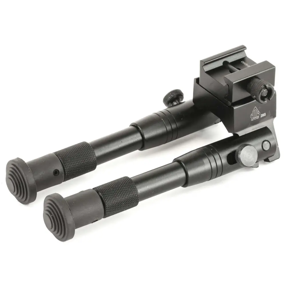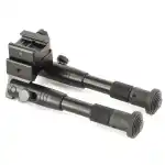 Leapers Shooter's SWAT Bipod is made of aluminum with a black finish. It has dual mounting, a Posi-lock, and a rubber feet.
