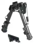 Leapers Tactical OP Bipod is made of heavy-duty meal with rubber feet. It has fully adjustable legs with three extension notches and a mount base with fully adjustable quick detach lever lock. Included is a swivel stud kit.