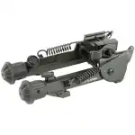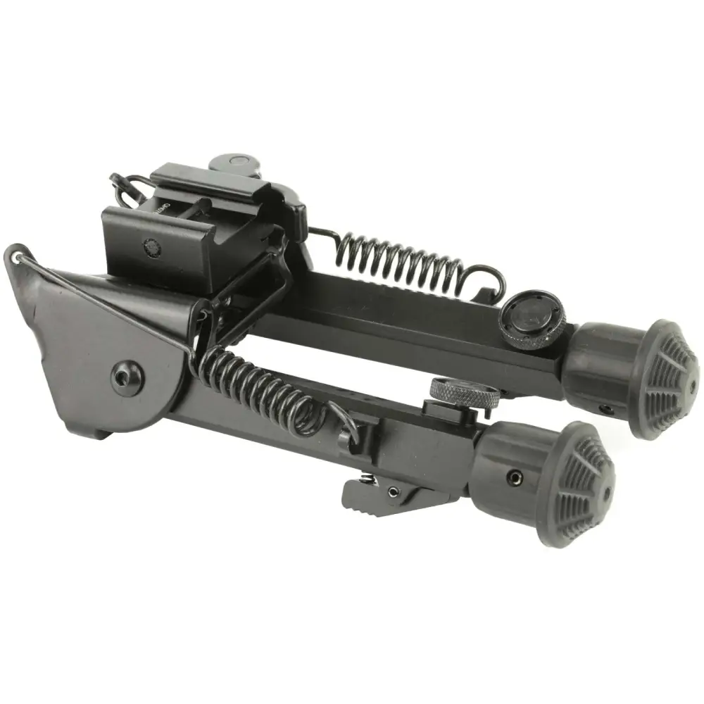 Leapers Super Duty Bipod with QD Lever Mount is constructed of metal with rubber feet and a black finish. It has dual mounting and fully adjustable legs.