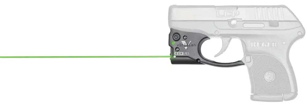 The Viridian R5 Gen 2 green laser sighting system is easy to install and blends seamlessly into the trigger guard for invisible profile and smooth draw. Viridian's green lasers utilize a 510-532nm wavelength range creating an optimum target dot that is up to 50 times brighter than red lasers. The gen 2 models include 3X more battery life (up to 5 hours) and an INSTANT-ON ambidextrous, inside the waistband (IWB) holster with automatic laser activation. Made of microfiber, this holster is more comfortable and durable than the previous models. This model is compatible with Ruger LCP.